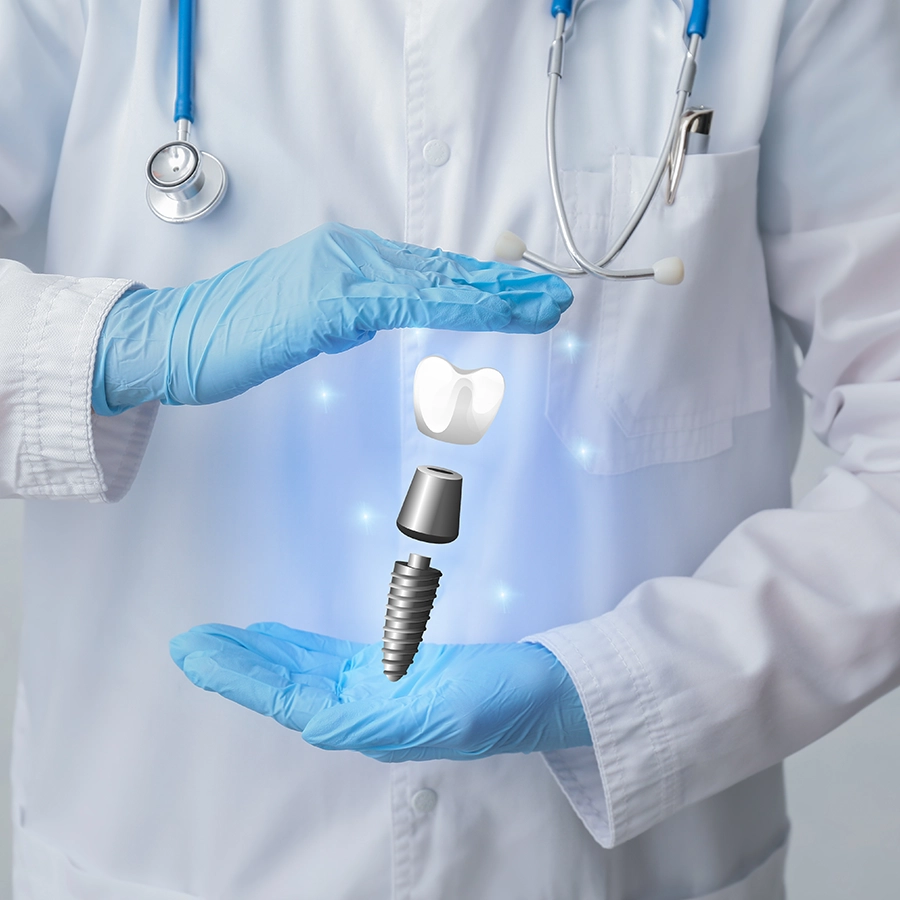 An implant is a small titanium screw which is placed in your jaw under your gum. After a few months of healing the screw will become fused to the jaw and part of your body. They are long lasting – with regular care and maintenance over 90% are there for life.